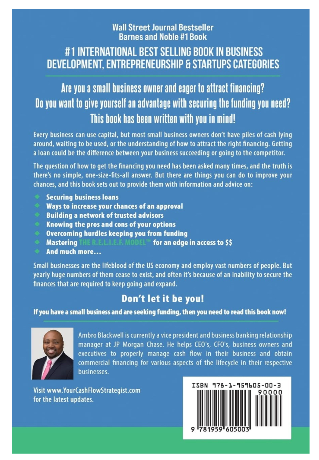 Unsure where to start when it comes to financing? Want to lessen the personal risks of that entrepreneurial leap? Ready to expand but lacking the cash flow to hire new employees? As a Certified Treasury Professional and MBA holder in finance and marketing, Ambro Blackwell has spent over seventeen years guiding small business owners toward success. And now he’s here to distill his decades of experience into actionable advice that will help novice borrowers achieve their monetary goals.